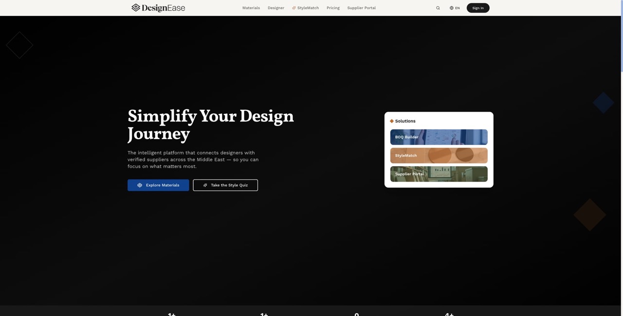 AI-powered interior design platform for the Bahrain market. Features Vision Lab for material extraction and style matching using Gemini AI, collaborative design boards, surface library with 25+ materials, AI room visualizer, and subscription billing in BHD. Built for designers and architects in the Middle East.